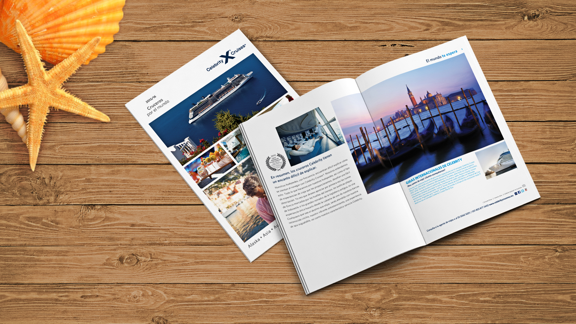 Diseño editorial por 5 años consecutivos de Brochure Celebrity Cruises, una línea de cruceros de Royal Caribbean.